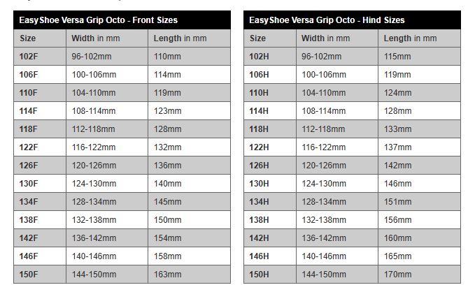 Podkowa w pełni poliuretanowa, niezwykle lekka z wydatnym bieżnikiem. Dzięki zintegrowanym paskom jest gotowa do przyklejenia na klej cyjanoakrylowy (super glue), nie ma konieczności zgrzewania. Przy odpowiedniej aplikacji i ostrożnym ściąganiu pasków, podkowy mogą zostać wykorzystane ponownie w kolejnym cyklu. Wbudowane podparcie strzałki i niska osłonka, która ma zapobiegać dostawaniu się brudu pod podkowę (w razie potrzeby może zostać łatwo wycięta nożem do kopyt). ModelCARRÉstep Versa Grip Octo pozwala na duże modyfikacje za pomocą tarnika lub szlifierki kątowej.